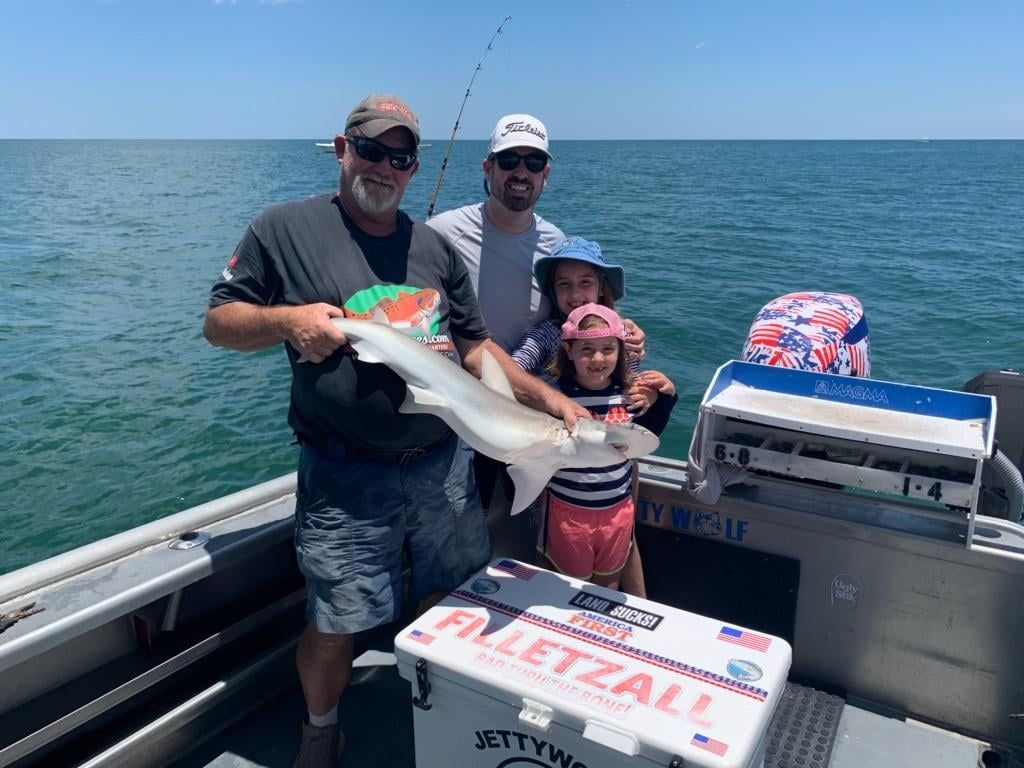 Capt. Dave has never failed to get us to the fish, from smaller fare by the jetties to 100# sharks! He’s great with kids, too. We’ve been out with him 8 times now and will be out for more.