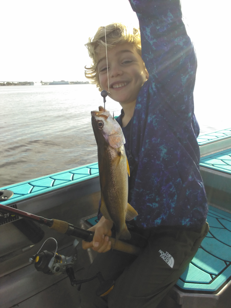 Non-stop bites by the bugs all morning on this 2 hr. KIDS TRIP. After one small trout we had to move away from them. We trolled plastics, still they followed us!. We moved to the river, and caught sand trout on shrimp. And the gnats weren't as bad. WEATHER-WISE, it was a PERFECT DAY. Contact us at Capt. Dave's Sport Fishing to book your kids 2 HOUR fishing adventure and create some lasting memories on the water.