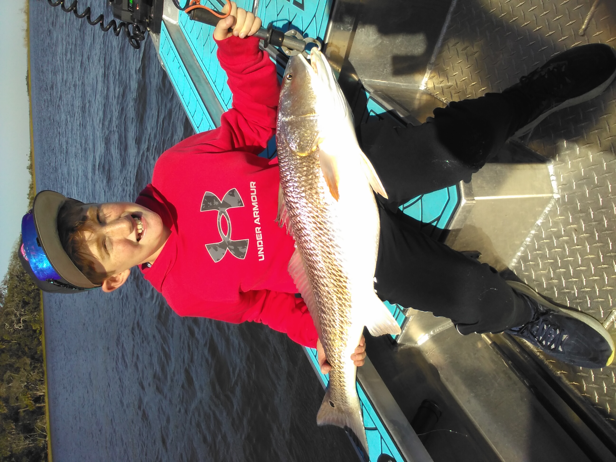Here's Mike, he and his his dad fish out of a little boat in the creeks, "just like I do". But Mike wanted to catch a bigger fish. So he booked a 1/2 day trip. We didn't go far. But the tide was wicked strong as usual. And Mike caught a 17 pound Redfish, which you usually won't get up in the Marsh Creeks. Unfortunately, this was the only one. But the battle cured Mike's want for a BIG fish for a little while. It wore him out.
