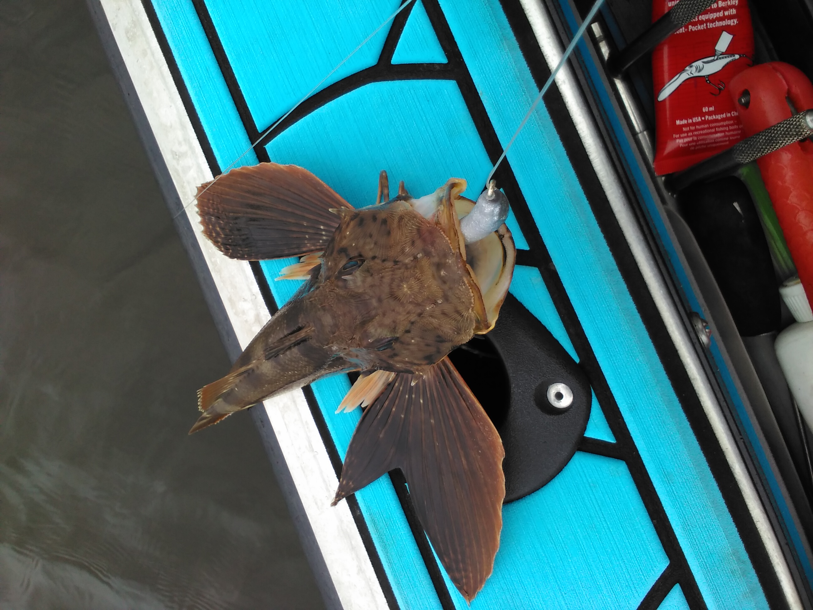 HERE'S JUST A FEW OF THE WACKY FISH CAUGHT RECENTLY (weird to smallest, coldest to CLOSED for harvest) The wind has been blowing, an the HIGH TIDES are killing me. Everything is FLOODED, and bites when the tides is so high like that are about "NIL". Did install a Larger and better Sounder/GPS on the Jettywolf on the 28th of Oct.
